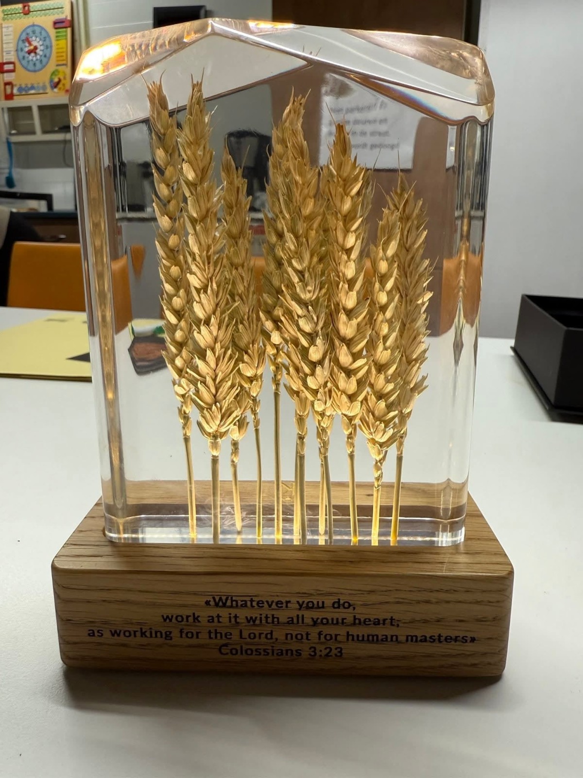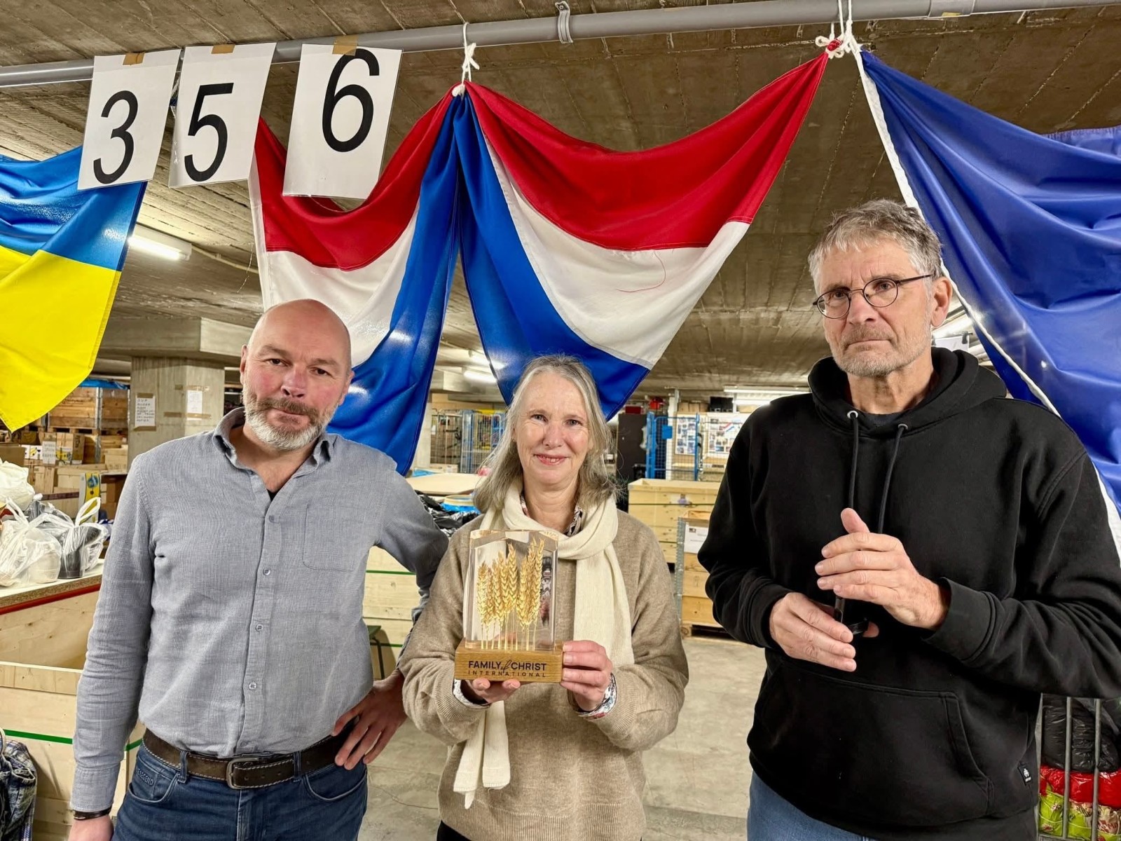 Op dinsdag 20 januari ontvingen we Rudolph Balazhinec, onze partner uit Oezjhorod, Oekraïne, in onze opslag aan de Peppels te Bussum. Rudolph gaf ons als dank voor al onze transporten een mooi beeldje, ontworpen door een designbedrijf in Oezjhorod. Het beeldje vertegenwoordigt het idee dat Oekraïne kan worden beschouwd als de graanschuur van de wereld.